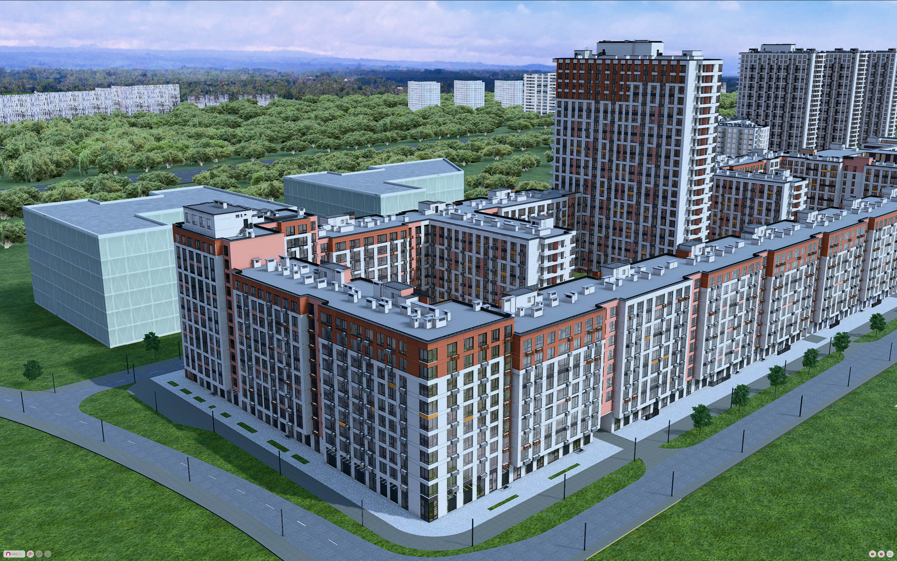 Our complex is a cozy 9-12-story building with sheltered courtyards and open spaces for the whole family. And for those who want more, there are 24-story towers with panoramic views.