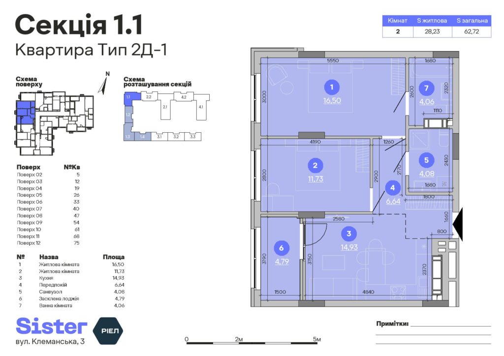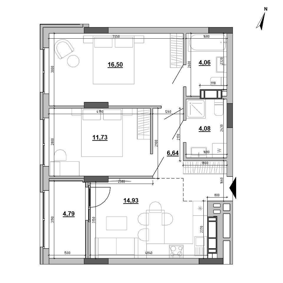 Планування 2-кімнатної квартири: №75, 62.72 м²