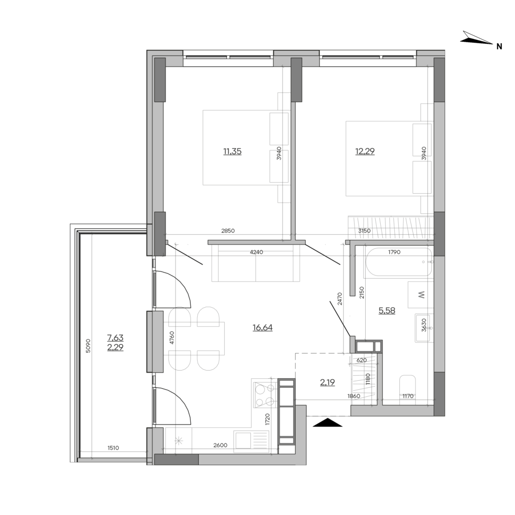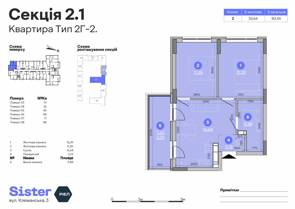 Планування 2-кімнатної квартири: №84, 50.34 м²