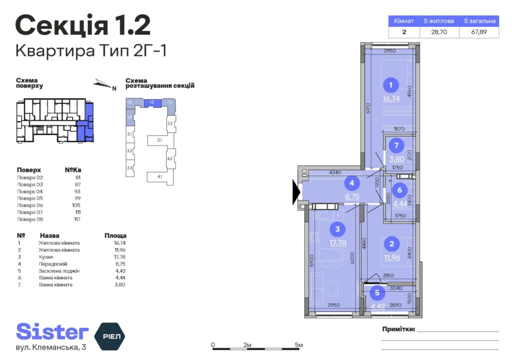 Планування 2-кімнатної квартири: №99, 67.89 м²